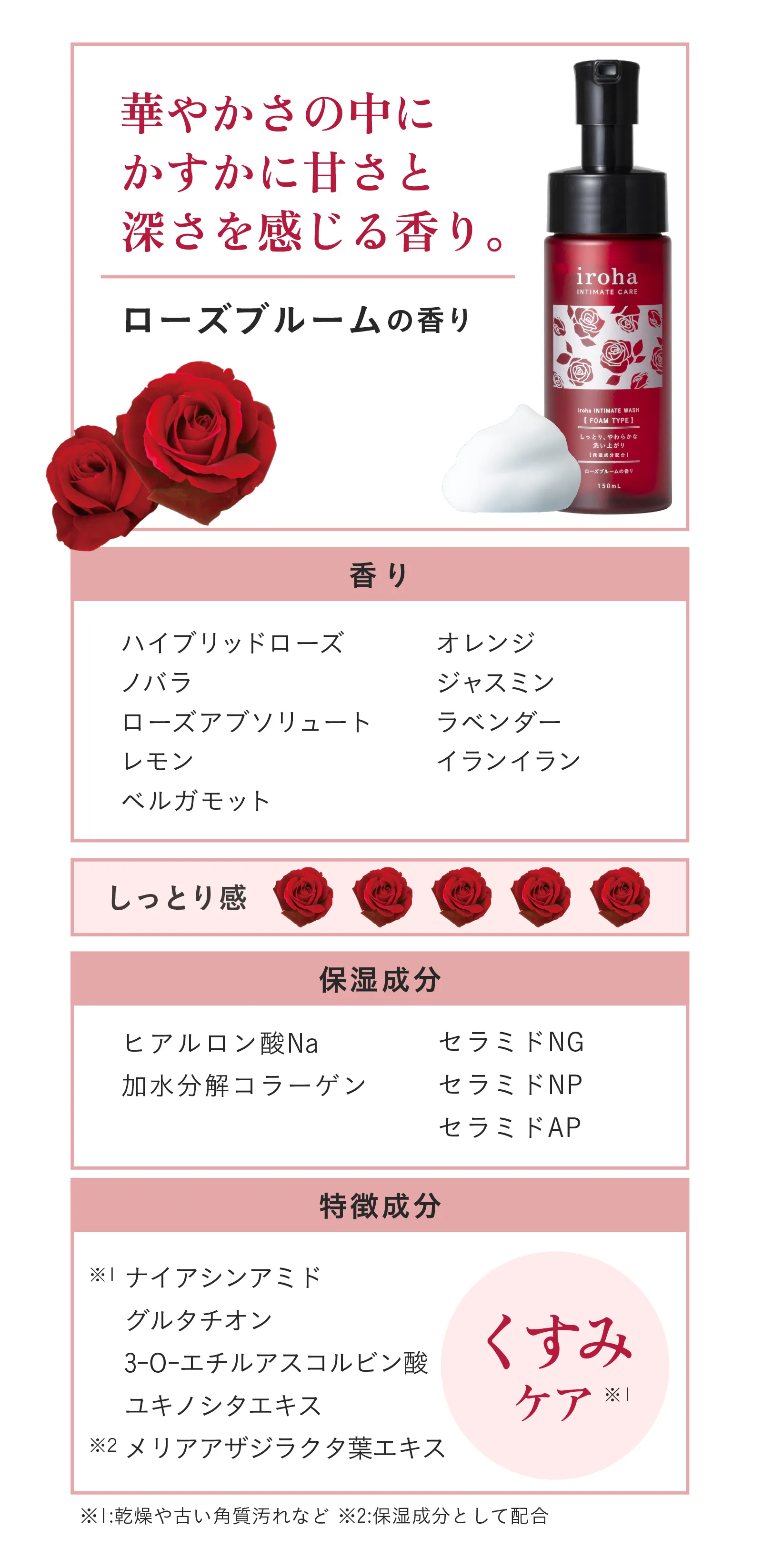 iroha INTIMATE WASH【FOAM TYPE】ダマスクローズとゼラニウムの香り