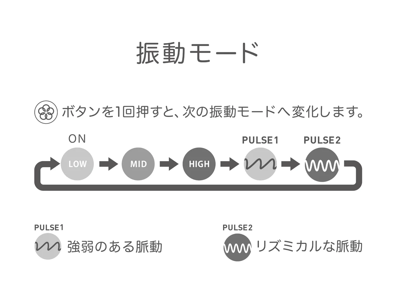 irohaは、様々な女性の好みに合わせて、繊細な振動から、力強い振動、リズミカルな脈動まで、パターンを切り替えることができます。さらに、今までにないほど静かなモーター音なので、安心して、快適にお使いいただけます。